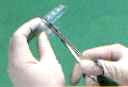 | 図6.即重レジンを歯頚部より少し多めに填入し、支台歯に圧接する。患者に軽く咬合させ咬合関係を調整する。 | 図7.レジンが硬化するまでに2〜3度着脱し、シートはレジンが完全硬化してから剥離する。マージン等を修正後試適、調整、研磨。 | 図8.口腔内装着。 |
