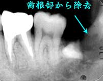 歯冠部分の除去ができず、歯根部分から除去 |