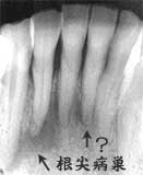 の疼痛を訴えた時にはすでに歯髄壊死から比較的大きな根尖病巣に発展した状態であった。