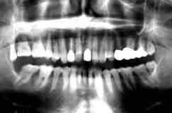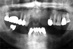 口腔清掃状態はそれ程悪くはないが、全体に歯槽骨吸収が著しく、軽度なところで1/3以上、